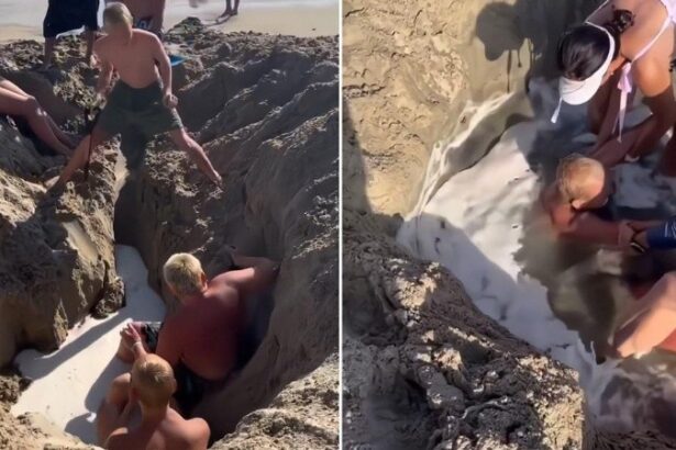Los socorristas rescataron a los niños después de que una ola provocara el colapso del…