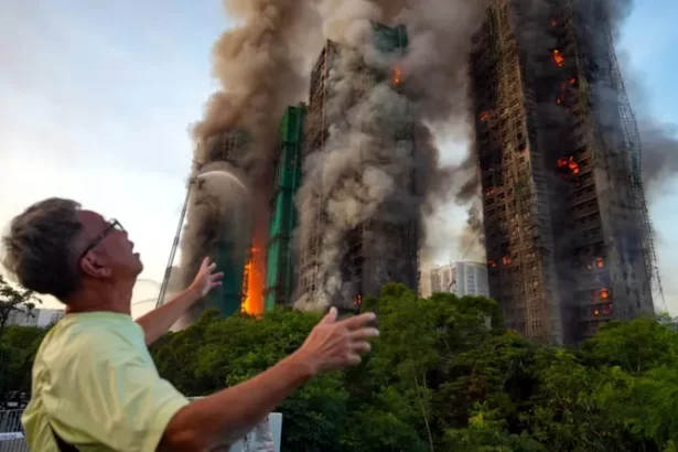 Un incendio se ha generado en Hong Kong, China. Un complejo de edificios conectados arde…