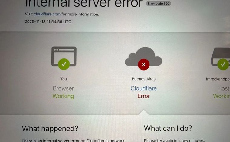 Al intentar ingresar a las páginas, los navegadores devuelven mensajes de «500 Internal Server Error» o «502 Bad Gateway«, indicando que los servidores no pueden responder a las solicitudes. Cloudflare confirmó que está «investigando el incidente» y trabaja en una solución para restablecer el tráfico.