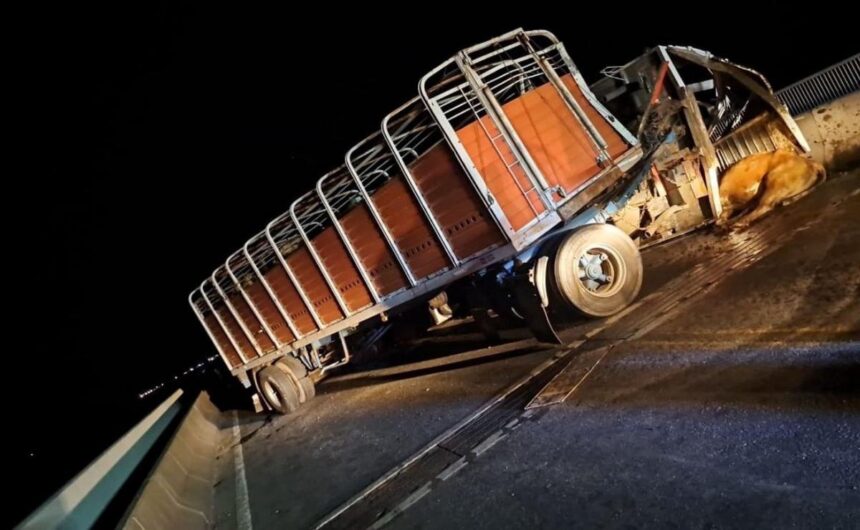 Este jueves, un choque tuvo lugar en la ruta 174, en el puente Rosario-Victoria. Un utilitario y un camión que trasladaba ganado protagonizaron el siniestro, que conllevó el corte transitorio del tránsito en la traza.