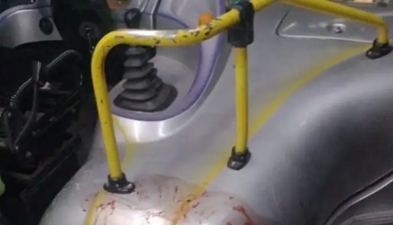 Hay rastros de sangre en gran parte del colectivo, incluso en el sector del conductor.