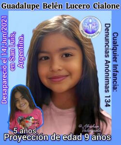 Yamila Cialone, madre de Guadalupe Lucero —la niña desaparecida en San Luis en junio de 2021—, solicitó a los medios de comunicación la difusión de una imagen de proyección realizada para mostrar cómo podría lucir su hija actualmente, a los 9 años de edad.