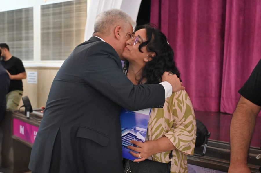 Este lunes, el gobernador Claudio Poggi encabezó la entrega de documentación en el marco de los programas “Escriturá Tu Casa” y “Protegé Tu Casa”, en el teatro de la Universidad Provincial de Oficios (UPrO), en Villa Mercedes.