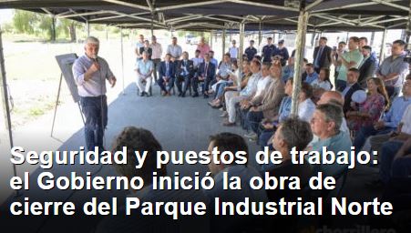 Este lunes el gobernador entregó el decreto de inicio de obra del cierre del Parque Industrial Norte de la ciudad de San Luis. Forma parte de un plan de puesta en valor del polo con recuperación de fábricas y galpones usurpados, luminaria y delimitación de terrenos que permitirá mejorar la seguridad en la zona y sumar puestos de trabajo. Para ello se utilizarán los New Jerseys retirados del circuito automovilístico en Potrero de los Funes.